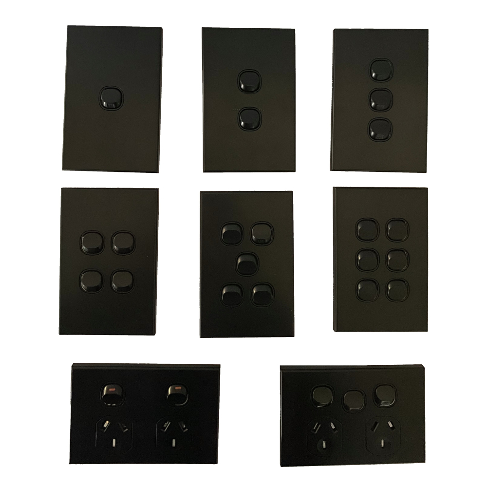 3A AU 1 2 3 4 5 6 Gang Wall Switch & Powerpoints – SAA – Slim – Black