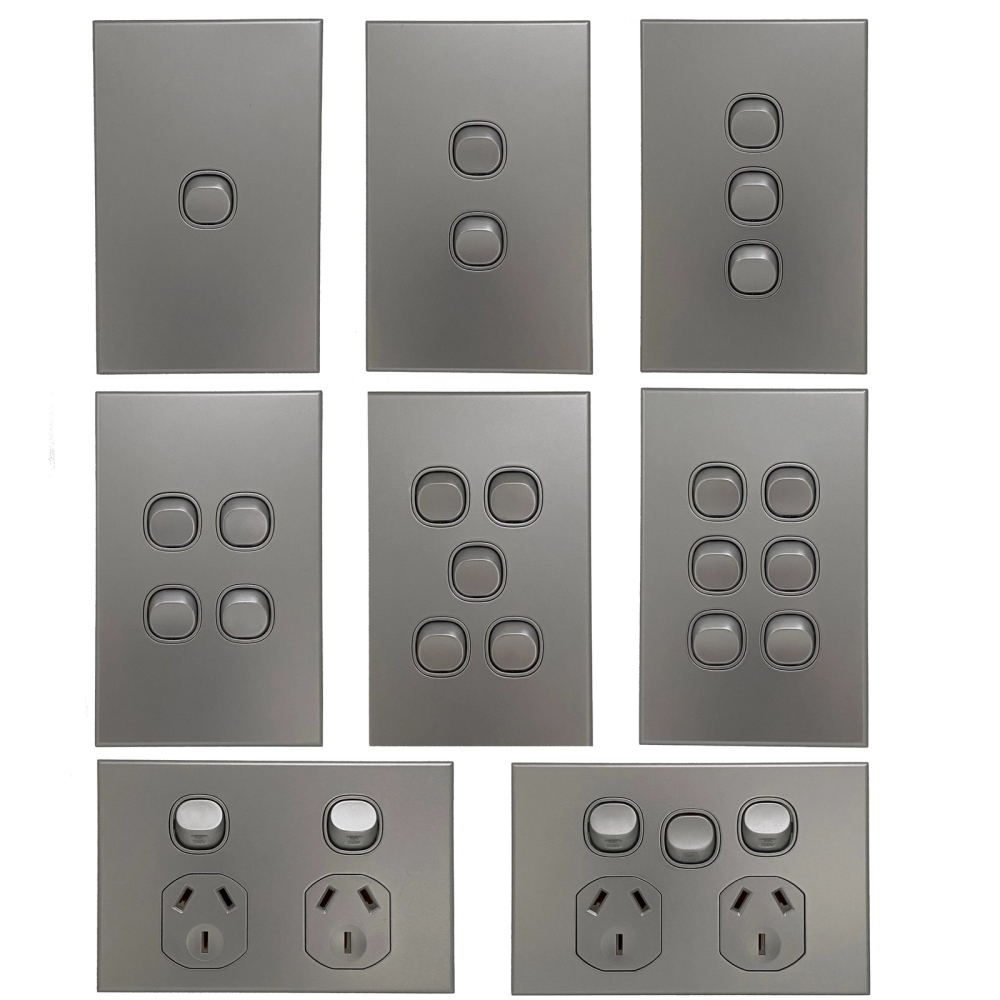 3A AU 1 2 3 4 5 6 Gang Wall Switch & Powerpoints – SAA – Slim – Silver